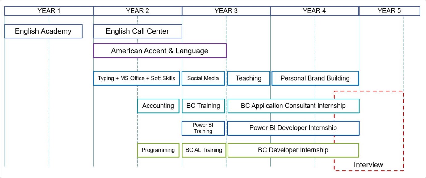 Students who complete the training program may be invited to participate in an internship program to work on active Business Central projects.